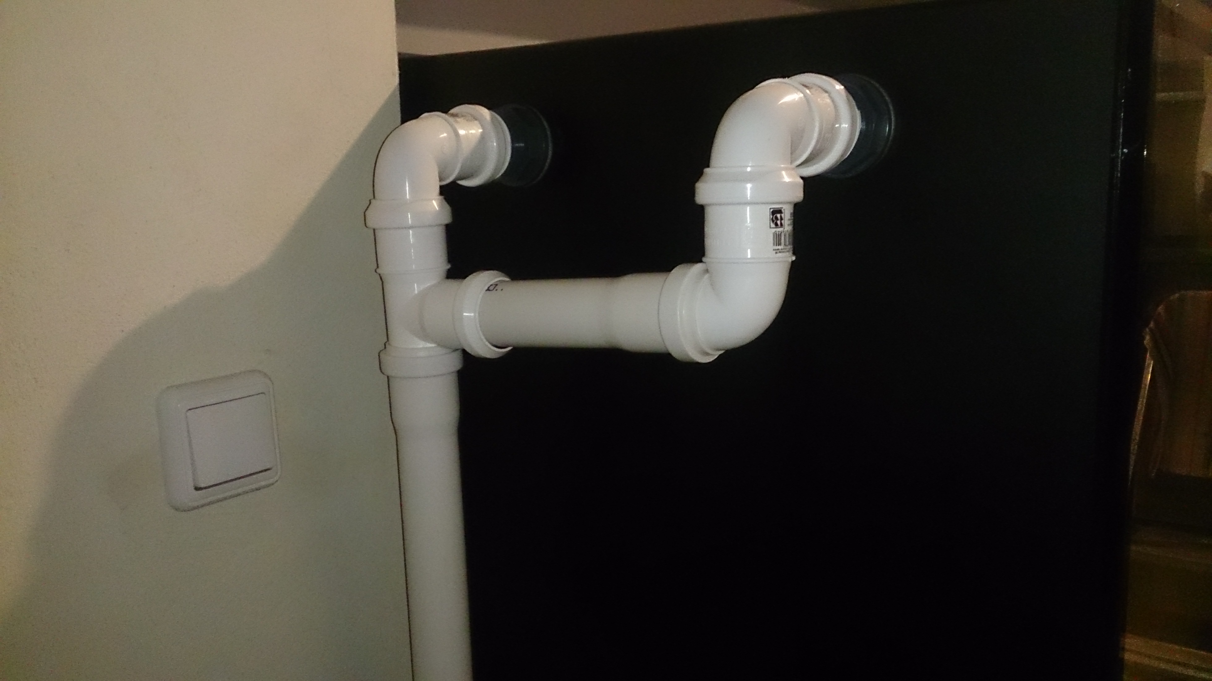 Na zamontowanych wcześniej przelotach ( szyba boczna prawa, patrząc na wprost akwarium ), założyłem wewnątrz akwarium kolana, do góry - tak aby podnieść maksymalnie poziom wody w akwarium, praktycznie na równi z listwami wzmacniającymi.