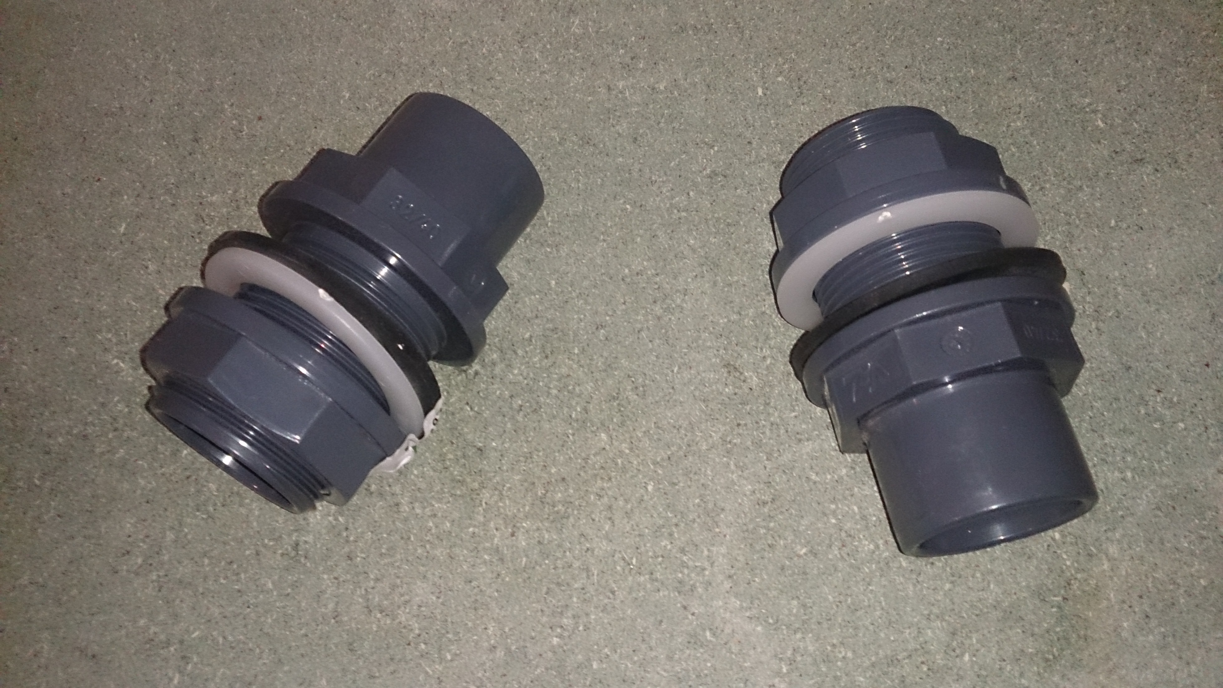 Na zamontowanych wcześniej przelotach ( szyba boczna prawa, patrząc na wprost akwarium ), założyłem wewnątrz akwarium kolana, do góry - tak aby podnieść maksymalnie poziom wody w akwarium, praktycznie na równi z listwami wzmacniającymi.